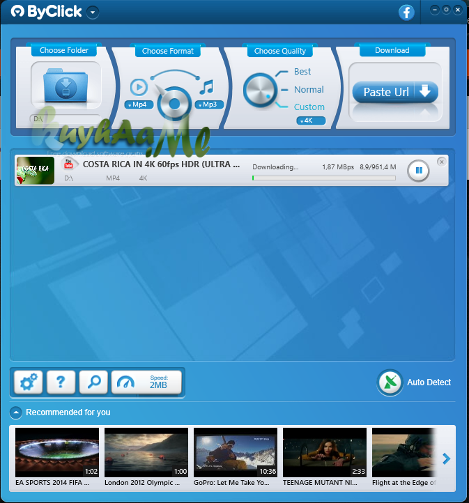 Sebelumnya jika kita mengenal YouTube By Click Premium ternyata saat ini telah berubah nama menjadi ByClick Downloader Premium 6.42 Terbaru yang merupakan software yang berfungsi untuk mendownload video ataupun Mp3 dari situs jejaring facebook, vimeo ataupun youtube, cukup anda tinggal copy paste linknya dan otomatis akan mendeteksi dan mendownloadnya.