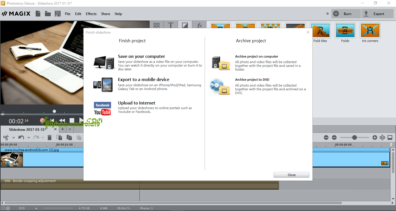 Dengan interface ataupun antarmuka dan tools-tools keren yang diberikan, kita dapat menambahkan effect menarik yang di sediakan dan juga kita dapat mengexport hasil dari yang kita olah di software MAGIX Photostory 2021 Deluxe langsung upload ke internet ataupun menyimpannya untuk mobile, komputer ataupun sebagai archive project DVD.