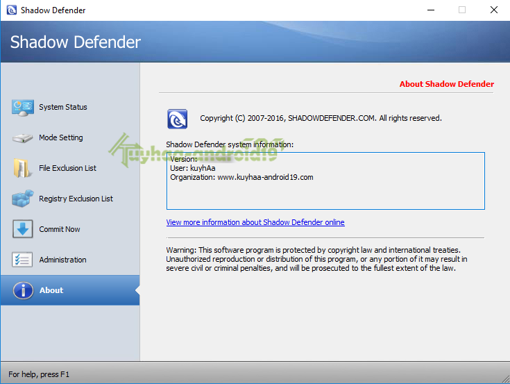 => Shadow Defender 1.6.9 Final | via uplee